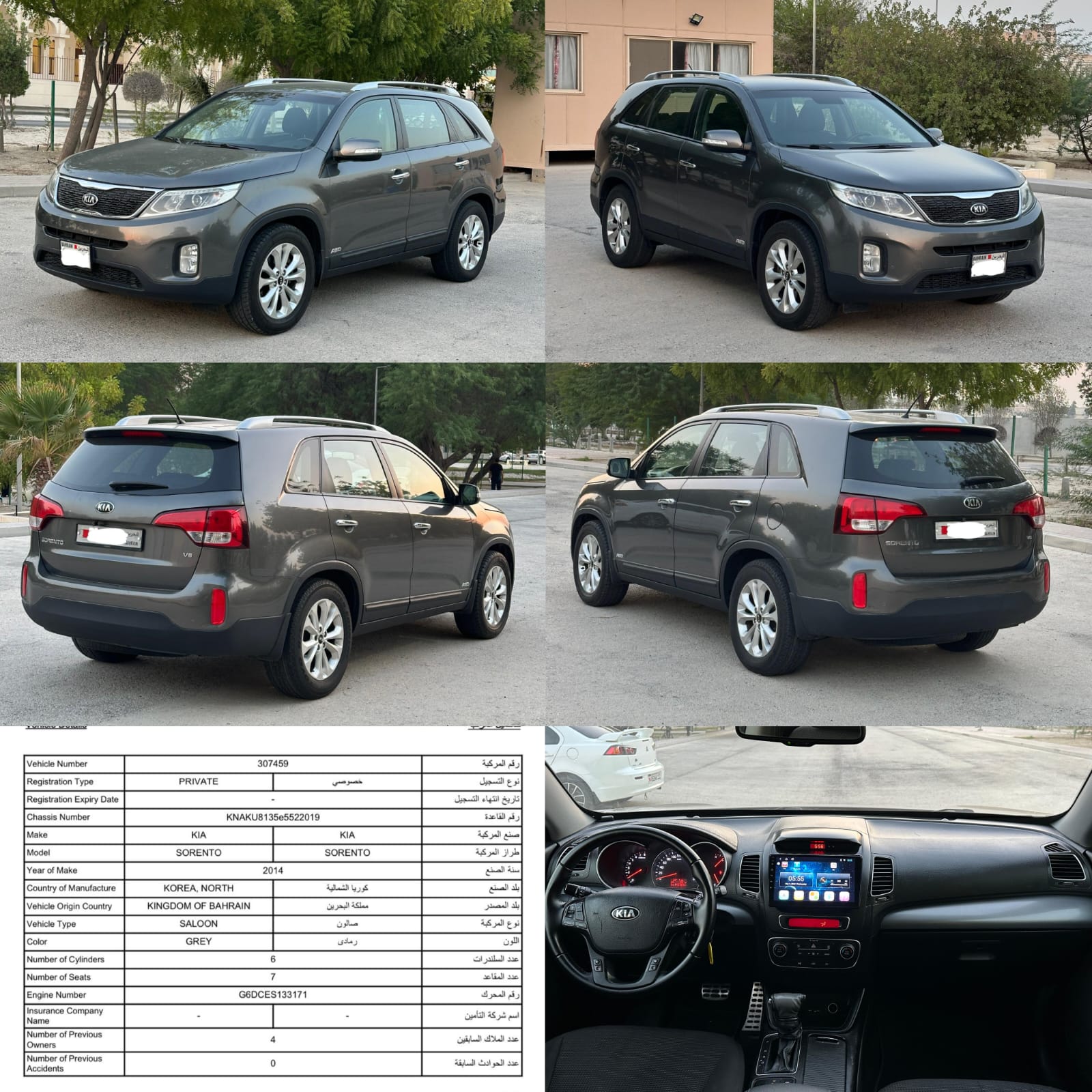 KIA SORENTO 3.5 MODEL 2014 ZERO ACCIDENT HAVE BIG LCD NEW TYRES EXCELLENT CONDITION CAR ENGINE GARE AC ALL OK INSIDE OUTSIDE CLEAN PASSING INSURANCE NOVEMBER 2025 KM 145000 PRICE 2900 NEGO CALL 33970985